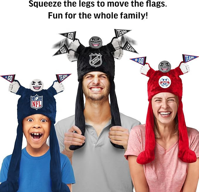 - Interactive Fun: But wait, there's more! The Cheering Sidekick hat doesn't just sit there looking cute; it's interactive too. Squeeze the feet and watch as the hands holding team flags wave enthusiastically. It's the perfect way to add some extra excitement to game day.