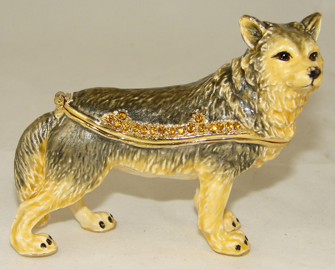 Enamel painted, in-laid with Czech crystals.